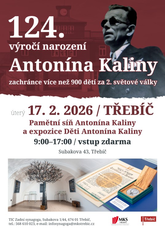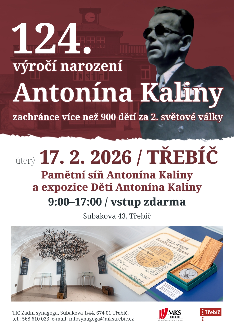 V úterý 17. února 2026 uplyne přesně 124 let od narození významného třebíčského hrdiny Antonína Kaliny. Rodák z třebíčské čtvrti Kočičina se narodil 17. února 1902. Neodmyslitelně je spjat se záchranou více než 900 dětí, převážně židovského původu, v koncentračním táboře Buchenwald.